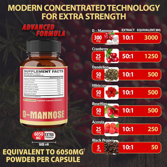2 Packs of 60 Count Agobi D-Mannose Extract Capsules 6050mg - Natural Urinary Tract Health & Immune Support - 7in1 Blend with Cranberry, Dandelion, Hibiscus & More - 4 Month Supply