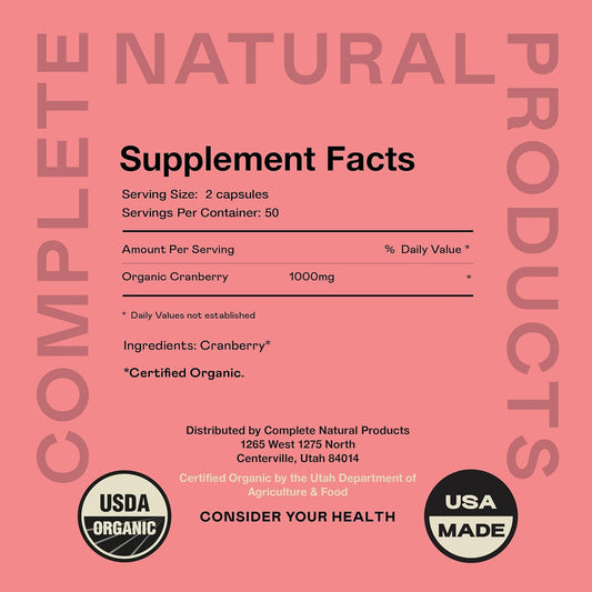 Organic Cranberry Capsules - 100 Count - 475mg Supplement - Vegan Concentrate & Powder Pills