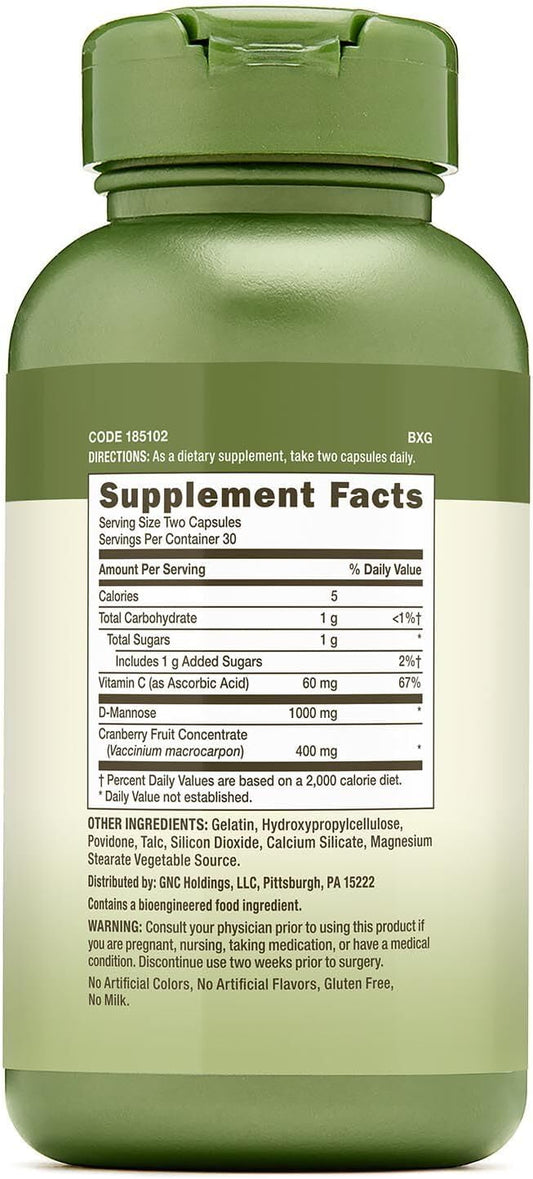 60 Capsules of GNC Herbal Plus Cranberry D-Mannose Supplement