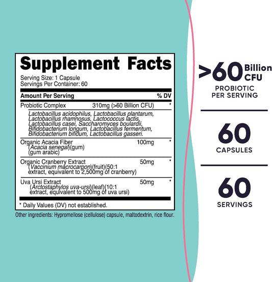 Nutricost Probiotic for Women with 60 Billion CFU, Acacia Fiber, Uva Ursi, & Cranberry Extract - 60 Capsules, Non-GMO & Gluten Free