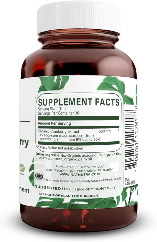 Organic Cranberry Extract Supplement for Urinary & Heart Health - 30 Tablets