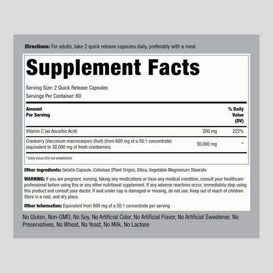 Triple Strength Cranberry Pills | 30,000 mg | 120 Capsules | Women & Men Supplement with Vitamin C | Non-GMO, Gluten Free