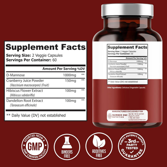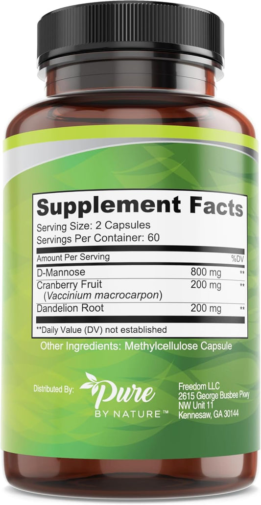 120 Count Pure By Nature D-Mannose Supplement with Cranberry and Dandelion Root for Urinary Health