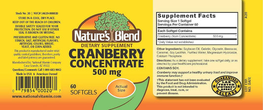 3 Packs of Nature's Blend Cranberry Concentrate 500 mg Soft Gels - Total of 180 Soft Gels