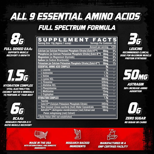 Nutrex Research EAA Hydration Blueberry Lemonade Amino and Creatine Monohydrate Powder for Enhanced Performance and Hydration