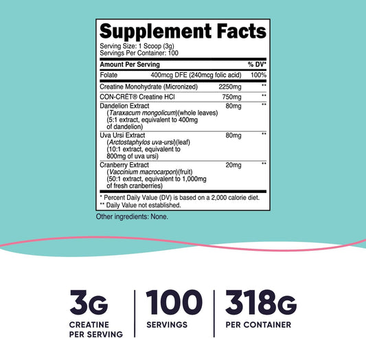 Blueberry Pomegranate Creatine Monohydrate with Dandelion, Uva Ursi, & Cranberry Extract - 50 Servings