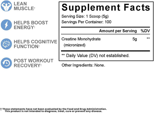 Pure Micronized Creatine Monohydrate Powder - 5000mg for Workout Support - Vegan & Gluten-Free - 100 Servings