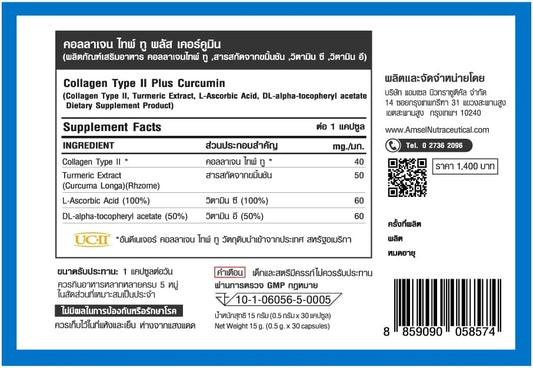 Amsel Collagen Type II with Curcumin Capsules - 30 Count