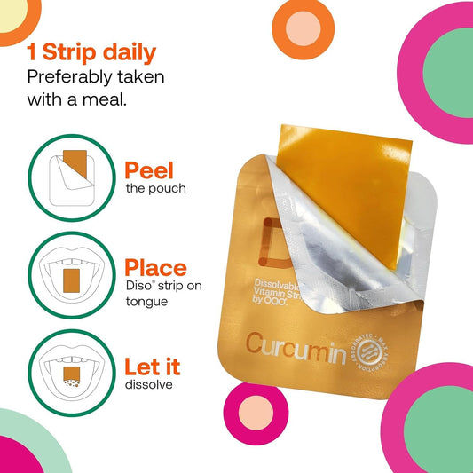 Curcumin Oral Supplement Strips - Orange Flavor, Vegan & Sugar Free - Dissolvable Strips for Maximum Absorption - 30 Count