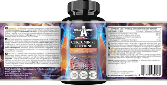 High Strength Turmeric Root Extract Capsules with Piperine for Enhanced Absorption - 302mg Curcumin, 95% Extract, 120 Vegan Capsules, 4 Months Supply
