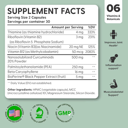 Emerald Labs Pea+ with Levagen+: Joint & Muscle Support with Curcumin & MSM - Non-GMO, Vegan - 60 Capsules