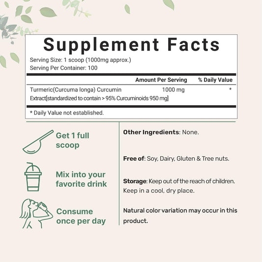 Physician Naturals Pure Curcumin C3 Complex Powder - 100% Turmeric Extract 100g - High Absorption Joint Support & Immune Health