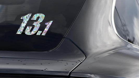 Silver Reflective Elektroplate 13.1 Half Marathon Decal Sticker - Universal Fit, Weatherproof, Automotive Grade, 2.25" x 3.25