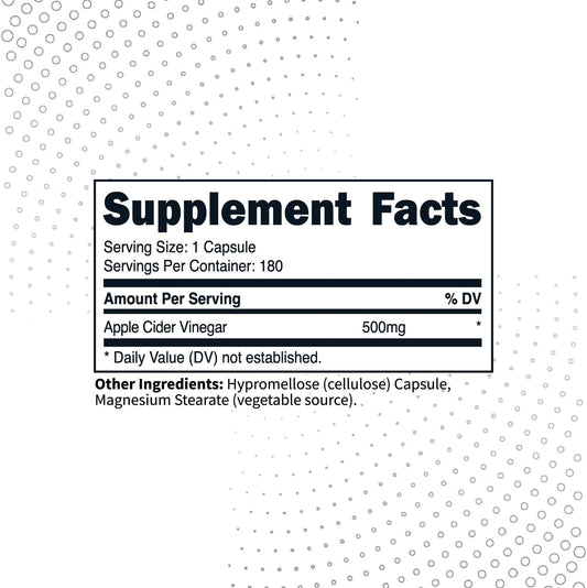 180 Count Type Zero Apple Cider Vinegar Capsules - 500mg Per Serving, Non-GMO & Gluten-Free Supplement