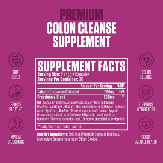 Advanced 15 Day Gut Cleanse Detox with Senna & Psyllium Husk - Non-GMO 30 Capsules for Men & Women