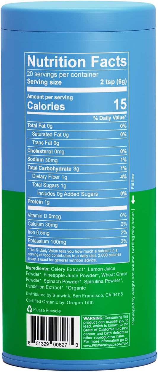 Organic Detox Greens Superfood Powder for Debloat - Daily Greens with Celery, Dandelion, Spirulina - Gentle Detox Powder - 4.2 oz (20 Servings)