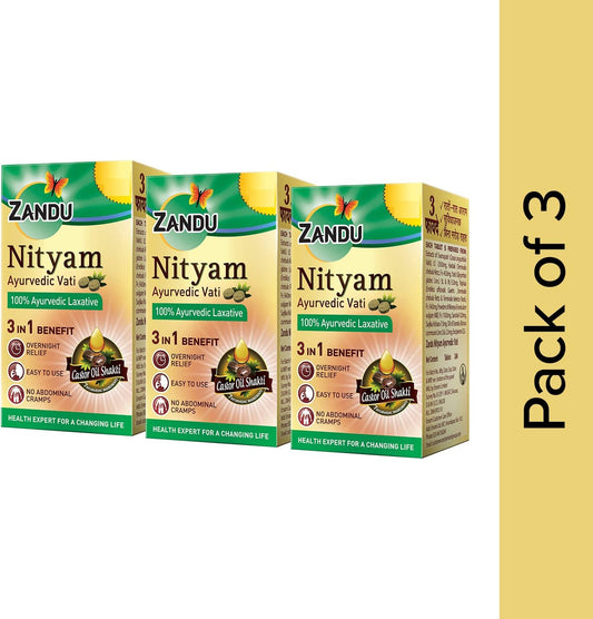 Zandu Ayurvedic Nityam Tablets - Herbal Supplement for Bowel Movement - 30 Tabs (Pack of 3) - Made with 7 Ayurvedic Ingredients - Supports Body Detox & Nutrient Absorption