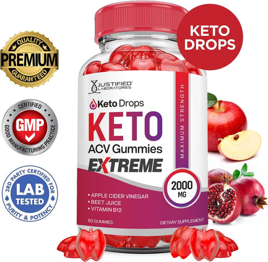 5 Pack of Justified Laboratories Keto Drops and ACV Gummies - 2000MG Extreme Formula with Apple Cider Vinegar, Pomegranate, Beet Juice Powder, B12 - Vegan and Non GMO - 300 Gummies