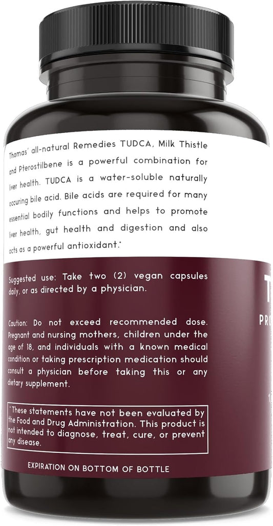 Premium Thomas' All-Natural Tudca Liver Support Supplement - 60 Capsules (500mg) - Vegan, Non-GMO, No Fillers - Tauroursodeoxycholic Acid - 1000mg Per Serving