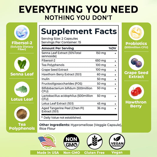 15-Day Cleanse & Detox Capsules with Cascara Sagrada, Senna Leaf, Psyllium - Colon & Gut Support - Rapid Flush & Enhanced Digestion - 30 Count