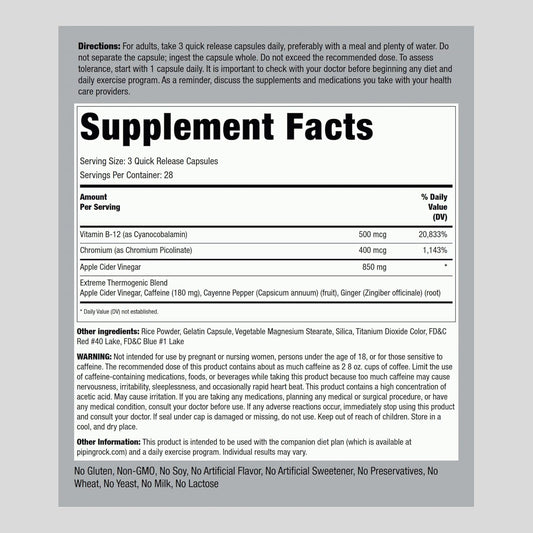 Apple Cider Vinegar Capsules with Vitamin B12, Chromium, and Cayenne - 84 Pills - Non-GMO, Gluten Free Supplement by Fitness Labs