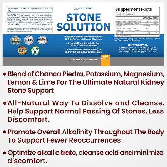 Natural Kidney Stone Dissolver Capsules with Bio Fiber - Kidney Stone Support & Cleanse, 60 Servings - Restorative Kidney Supplement - 2.5LBS