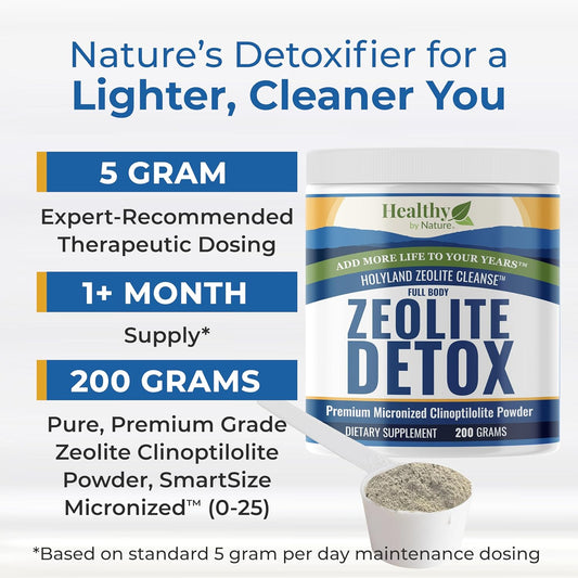 Natural Zeolite Detox Powder for Full Body Cleanse (7.05oz) - Activated Clinoptilolite - Supports Energy, Focus, Immunity - Gut Health - Men, Women - Micronized 0-25