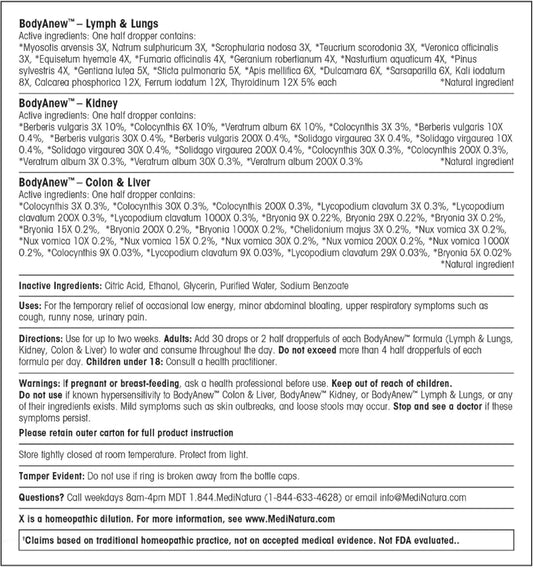 MediNatura BodyAnew Oral Drops 3 Step Homeopathic Cleanse - Whole Body Support - 150 ml Drops for Women & Men