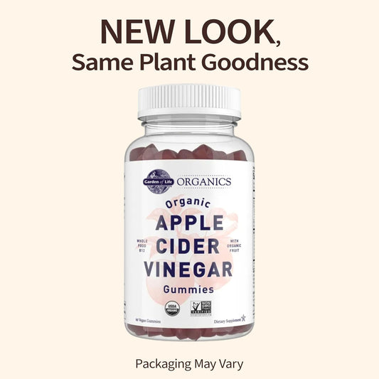 Organic Apple Cider Vinegar Gummies with Real Fruit Blend, Vitamin B12 - Vegan, Gluten Free, Non-GMO - 60 Gummies