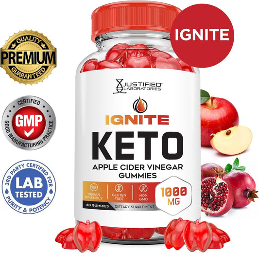 2 Pack Ignite Keto ACV Gummies - 1000MG Advanced Formula with Pomegranate Beet Juice Powder - Vegan Non GMO - 120 Gummies