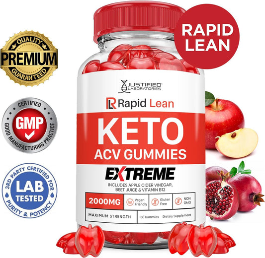 2-Pack Rapid Lean Keto ACV Gummies - Extreme 2000MG - Apple Cider Vinegar with Pomegranate Beet Juice - B12 Vegan Non GMO - 120 Gummies