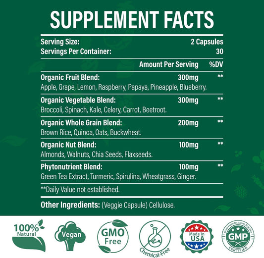 Organic Greens Superfood Powder for Women & Men | Cold-Pressed Vegan Green Powder | Daily Green Superfood (30 Servings)