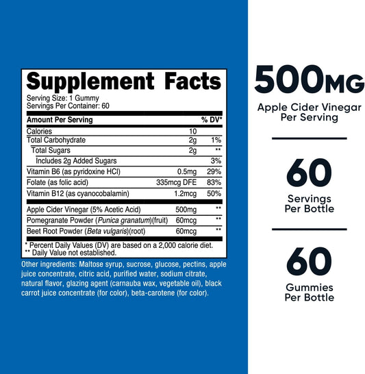 Natural Energy Supplement with Mother for Body Cleansing, Immune Support, and Gut Health - Apple Cider Vinegar Gummies with Vitamin B12 and Beetroot Root - Natures Craft