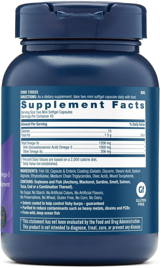 90 Mini Softgels GNC Triple Strength DHA 1000 Mini for Joint, Skin, Eye, and Heart Health - High Potency Omega-3 Supplement