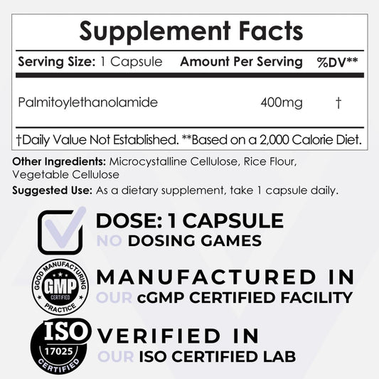 Palmitoylethanolamide Capsules 400mg | 60 Count | Pain Management Support | Anti-Inflammatory | Nootropics DepotVendor:Nootropics DepotRegular price $148.48 AUDRegular priceUnit price / per