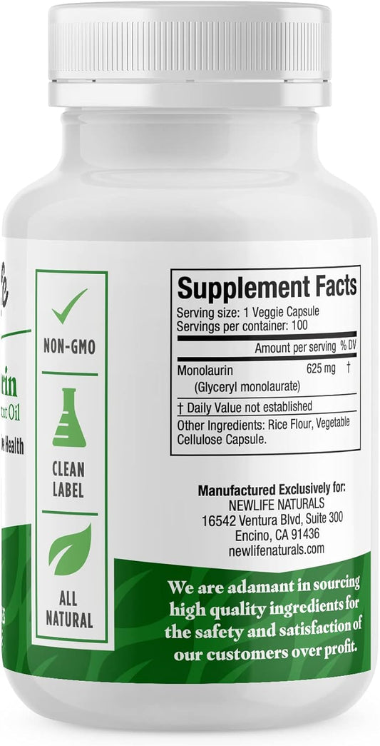 Monolaraurin Dietary Supplement - 625mg Monolaurin & Lauric Acid for Immune & Digestive Health - 100 Capsules