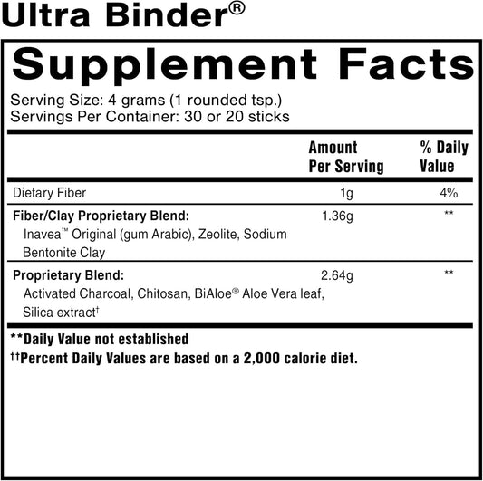 Ultra Binder Powder - Powerful Multi Toxin Binder with Bentonite Clay, Zeolite, Activated Charcoal - Supports Gut Health & Toxin Removal - 120g