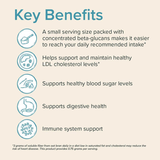 Oat Bran Powder with 750mg Beta Glucan for Cholesterol & Immune Support - Heart Healthy & Vegan Fiber Powder