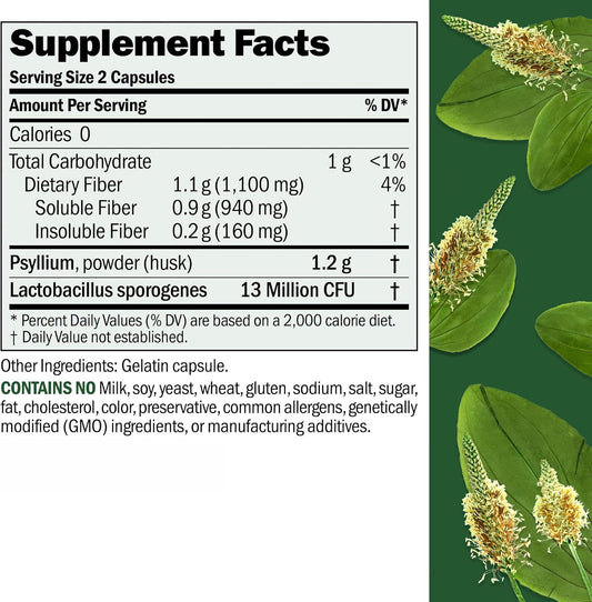 Psyllium Husk Powder Capsules - Promotes Regularity and Digestive Health - High Fiber - Easy to Swallow - No Additives