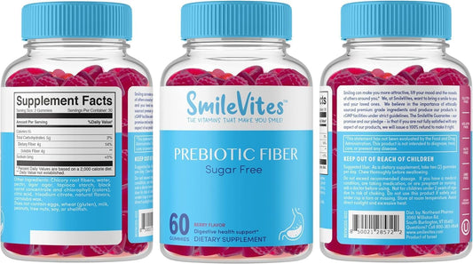 SmileVites Prebiotic Fiber Gummies - Vegan Keto Digestive Health Supplement - 60 Count Vegan Gummies - Berry Flavor Gluten-Free & Non-GMO - Supports Gut Bacteria & Digestive Regularity