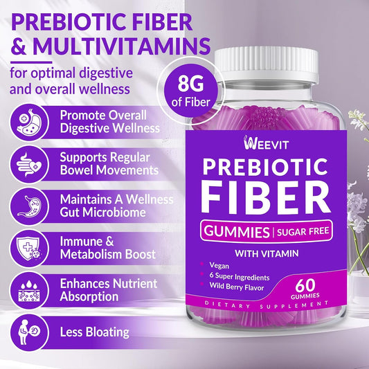 WEEVIT Sugar Free Fiber Gummies with Prebiotic Digestive Blend - 8g Fiber Supplement for Metabolism & Gut Health