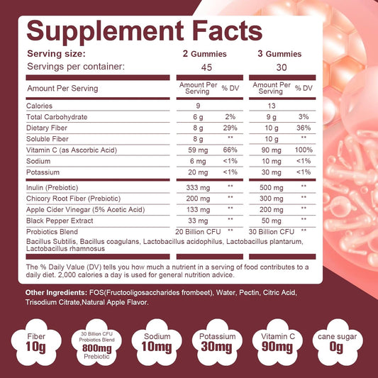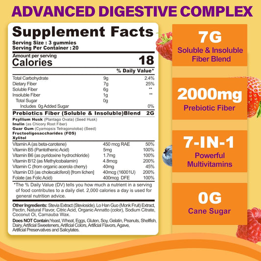 Probiotic Fiber Gummies with 18-in-1 Multivitamin and Inositol for Digestive Health