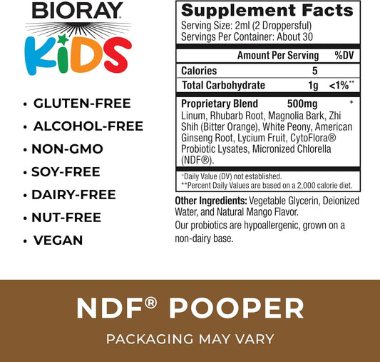 Bioray Kids NDF Pooper Mango Liquid Supplement 2 fl oz - Natural Bowel Mover for Children - Non-GMO, Vegan, Gluten-Free - 30 Servings