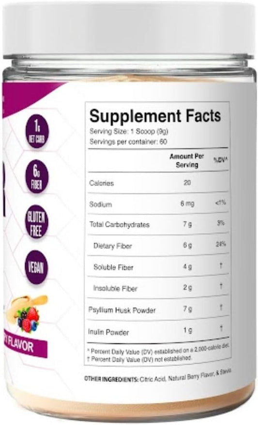 Dr Colbert MD Fiber Zone Powder - Berry Flavor | Prebiotics, Psyllium Husk, Inulin | 6g Fiber | Recommended for Keto & Healthy Gut | 19 oz