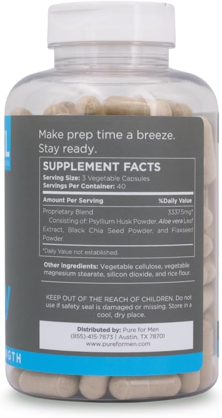 Stay Ready Fiber Extra Strength Supplement for Digestive Regularity & Gut Health Support - 120 Vegan Capsules