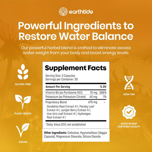 Natural Water Lipo Pills with Electrolytes & Vitamins - Diuretic Cleanse for Water Retention - Gluten-Free, 42 Capsules