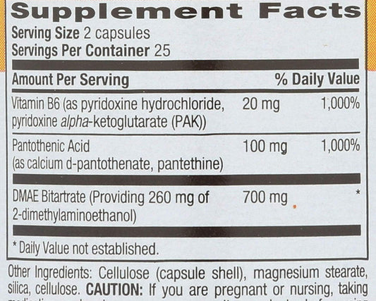 Country Life Coenzymed DMAE Capsules - 350mg with PAK and Pantothenic Acid - 50 Vegan Capsules