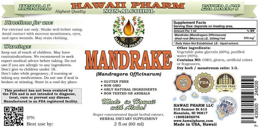 Alcohol-Free Mandrake Liquid Extract Glycerite - 2 oz USA Herbal Supplement