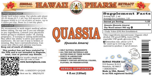 Quassia Amara Liquid Extract Tincture Herbal Supplement 4 fl.oz USA-made by Hawaii Pharm