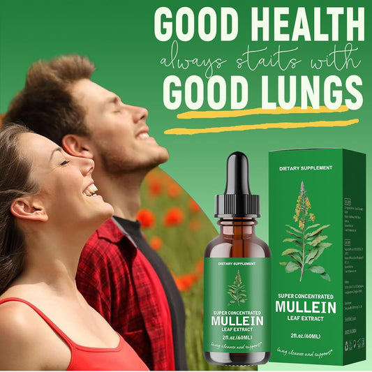 7-in-1 1500mg Mullein Leaf Liquid Extract Drops for Lung Cleanse and Respiratory Support, 2 Fl Oz - Smokers Lung Detox Formula